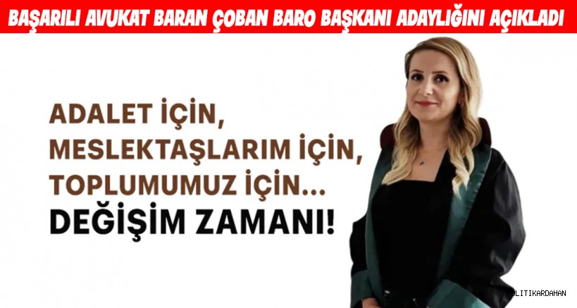 Avukat Baran Çoban neden aday olduğunu şu ifadelerle anlattı: “Hepimiz biliyoruz ki, hukuk sadece bir meslek değil, aynı zamanda toplumsal düzenin ve adaletin teminatıdır. Ancak, hukuk sistemimizin ve mesleğimizin karşı karşıya olduğu zorluklar her geçen gün artmaktadır. Avukatların haklarının korunması, mesleki bağımsızlığın sağlanması ve adalete erişimin güçlendirilmesi gibi hayati konularda güçlü bir baroya her zamankinden daha fazla ihtiyaç duyulmaktadır.