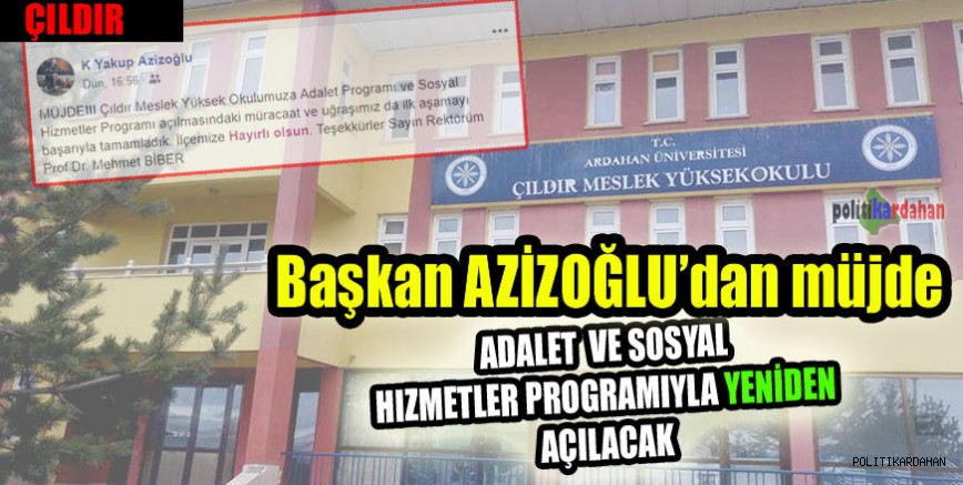 Yüksek Okulun barınma problemi nedeniyle öğrenci alımı yapmaması üzerine harekete geçen Belediye Başkanı Azizoğlu, belediye bünyesinde yapımı tamamlanan konaklama tesisini öğrenci yurdu yapılması için üniversiteye vermesinin ardından sevindirici gelişmeler yaşanmaya başladı. Azizoğlu’nun girişimleri sonucu Ardahan Üniversitesi Rektörü Prof. Dr. Mehmet Biber'in de desteğiyle Çıldır Meslek Yüksek Okulu, Adalet ve Sosyal Hizmetler Programıyla önümüzdeki yıl öğrenci alarak yeniden eğitime başlayacak.