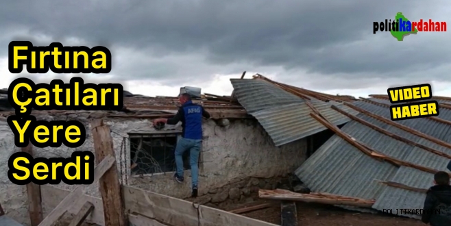 Ardahan il merkezine bağlı Lehimli köyünde şiddetli fırtına sebebiyle bir evin çatısı uçtu.