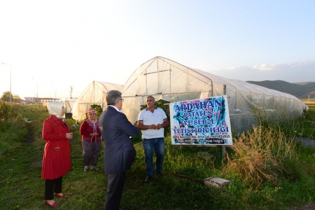 Vali Bilmez, eşi Meral Bilmez ile birlikte Halil efendi mahallesi Şavşat yolu üzerinde Bulga ailesinin serasını ziyaret etti. Serayı gezerek yetiştirilen ürünler hakkında bilgi alan Vali Bilmez, her turlu sebze yetiştiren aileyi tebrik etti.