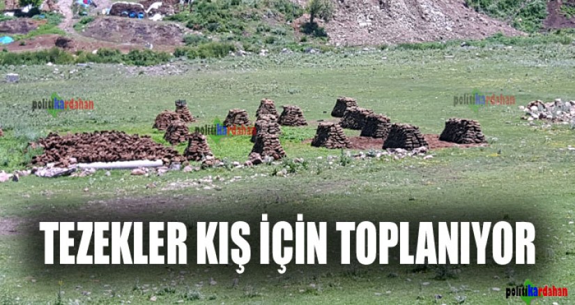 Ardahan’da hayvan gübresinden elde edilen ve kış aylarında kalıp şeklinde yere serilip, ilkbaharda özenle kesilen tezekler, kış hazırlığı için toplanmaya başlandı. Yağmurların ara vermemesinden dolayı bu yıl geç kesilen tezekler, kara şeklinde kesildikten sonra bir araya toplanarak kışın sobalarda yakılmak üzere depolara kaldırılıyor.