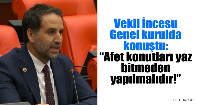 Genel kurulda yaptığı konuşmada, yol sorunlarını dile getirip Göle’deki depremin ardından afet konutlarının yapılmasını isteyen İncesu, şunları söyledi: