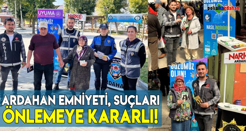 Ardahan Emniyet Müdürlüğü ekipleri, kent genelinde dolandırıcılık faaliyetini önleme, kadına şiddeti azaltma, narkotik suçları engelleme ve halkı bilinçlendirme çalışmalarını aralıksız sürdürüyor.