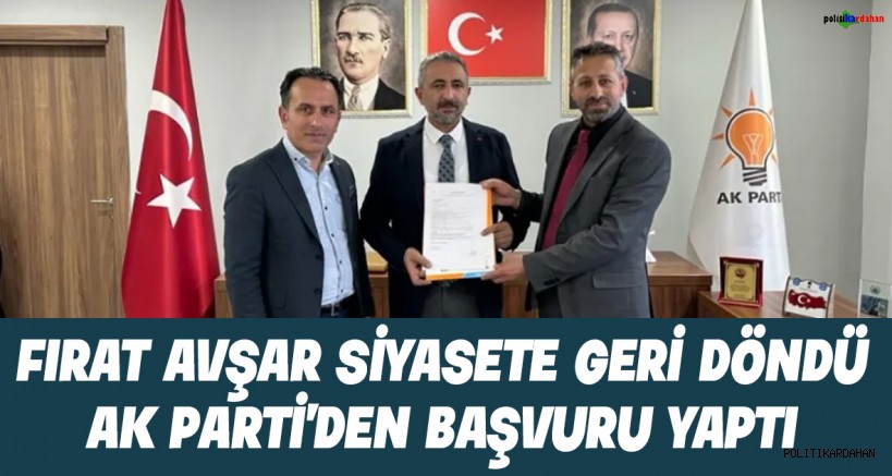 AK Parti’de önceki dönemlerde Merkez İlçe Başkanlığı görevinde bulunan iş insanı Fırat Avşar, bir süredir uzaktan izlediği siyasete geri döndü. Avşar, AK Parti’den belediye başkanlığı aday adaylığı başvurusunu yaptı.