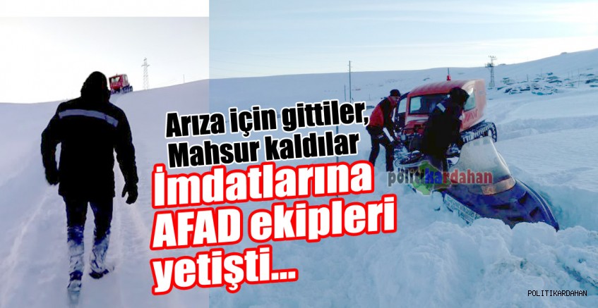 Ardahan’ın Bülbülan geçidinde oluşan elektrik arızasını gidermek üzere kar motoruyla bölgeye gittikten sonra mahsur kalan elektrik arıza ekipleri, AFAD tarafından kurtarıldı.