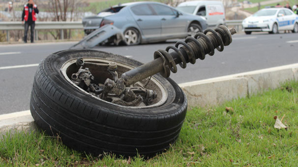 Çarpışmanın etkisiyle 23 plakalı araç karşı istikamete dönerek tekerleği koptu. Kopan teker refüje fırladı. Kazada 2 kişi yaralandı.