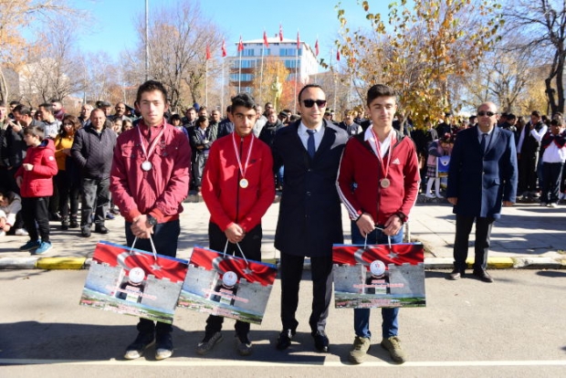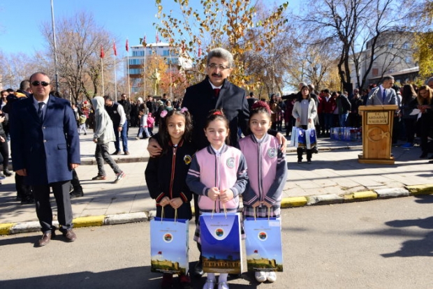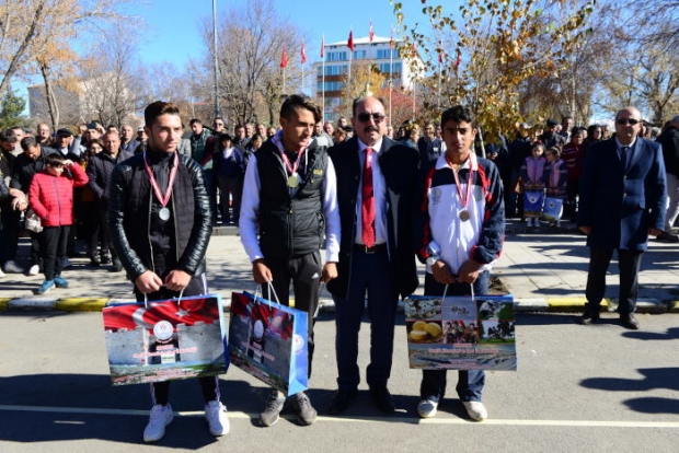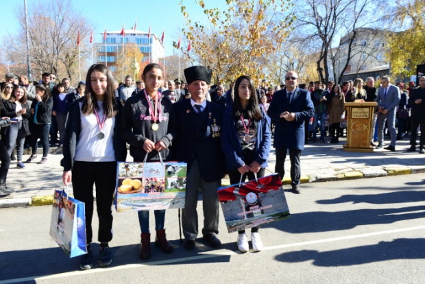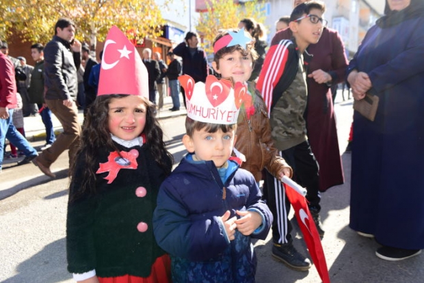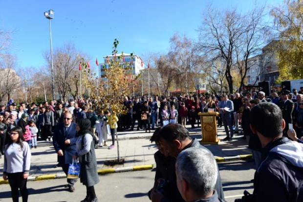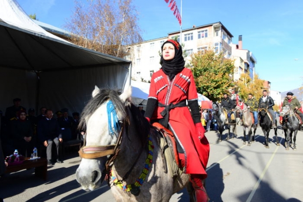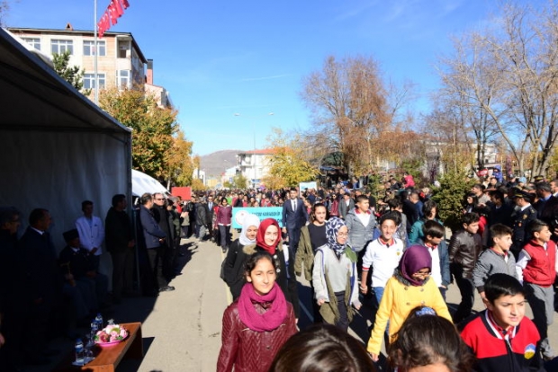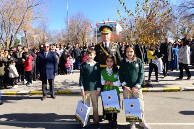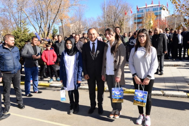 Vali Bilmez’in konuşmasının ardından şiirler okundu, türküler seslendirildi. Çeşitli yarışmalarda dereceye giren öğrencilere ödüllerin de verildiği programda öğrencilerin halk folklor gösterisi büyük beğeni topladı. Program, öğrenciler ve askerlerin geçidiyle sona erdi.