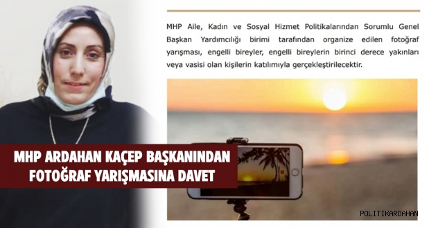 MHP Ardahan KAÇEP Başkanı Songül Çelik, partisinin Kadın ve Sosyal Hizmet Politikalarından Sorumlu Genel Başkan Yardımcılığı birimi tarafından organize edilen fotoğraf yarışmasına, engelli bireyler ve engelli bireylerin yakınlarını davet etti.