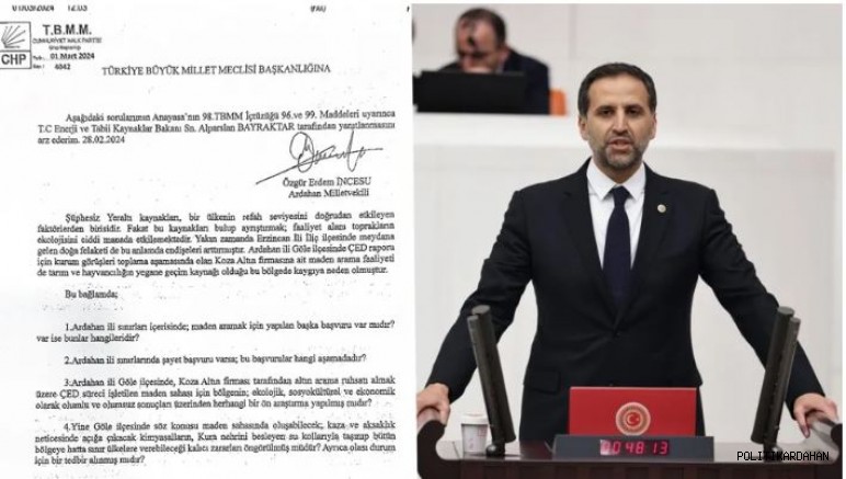 Soru önergesi ile ilgili bilgi veren İncesu, “Şüphesiz yer altı kaynakları bir ülkenin refah seviyesini doğrudan etkileyen faktörlerden birisidir. Fakat bu kaynakları bulup ayrıştırmak, faaliyet alanı toprakların ekolojisini ciddi manada etkilemektedir. Yakın zamanda Erzincan ili İliç ilçesinde meydana gelen doğa felaketi de bu anlamda endişeleri arttırmıştır. Ardahan İli Göle ilçesinde ÇED raporu için kurum görüşleri toplama aşamasında olan Koza altın firmasına ait maden arama faaliyeti de tarım ve hayvancılığın yegane geçim kaynağı olduğu bu bölgede kaygıya neden olmuştur”.