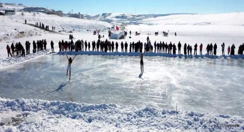 Türkiye Artistik Buz Pateni milli takım sporcuları Ceren Karaş ve Yağmur Derin Kevinç, yüzeyi buz tutan Çıldır Gölü'nde performans sergiledi. Karakaş, "Bizim için muhteşem bir duyguydu" dedi.