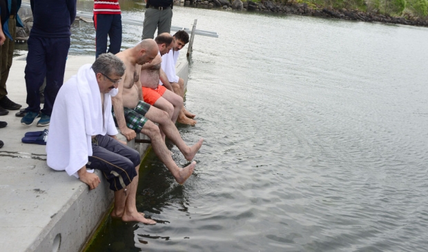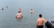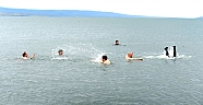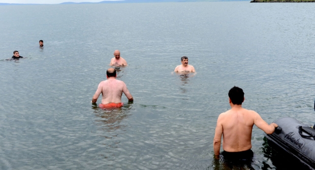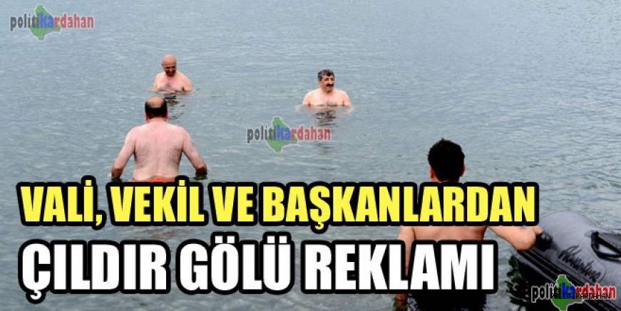 ARDAHAN Valisi Mehmet Emin Bilmez, AK Parti Ardahan Milletvekili Orhan Atalay, Ticaret ve Sanayi Odası (TSO) Başkanı Çetin Demirci ile Ankara Ardahan Dernekler Federasyonu Başkanı Ergüder Şimdi, Çıldır Gölü'nün güzelliğine dikkat çekmek için gölün serin sularında kulaç attı.